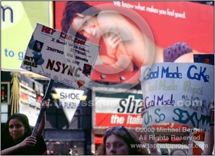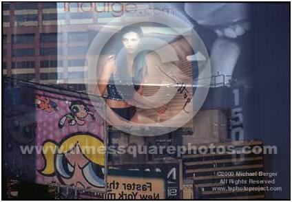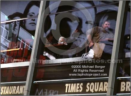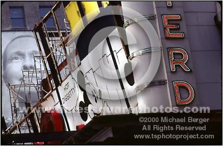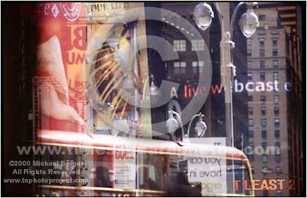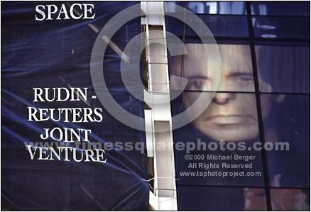 the street on skin of glass. Familiar faces gaze down at the mass of human